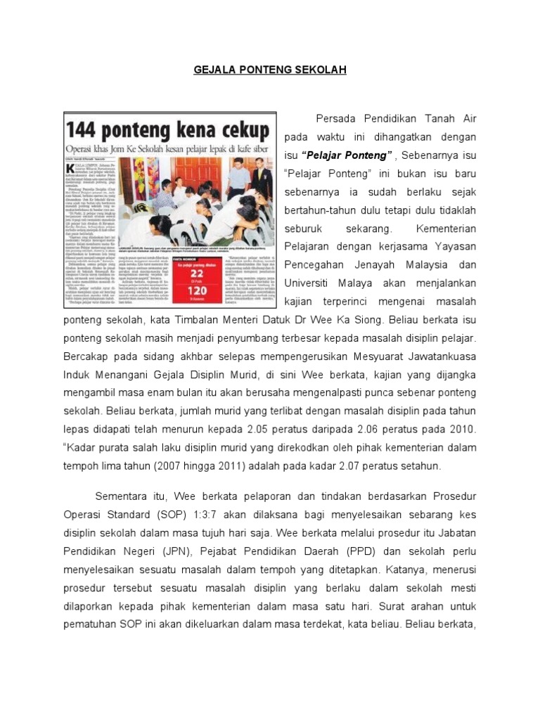 Terdapat pelbagai faktor-faktor yang menyebabkan pelajar-pelajar terlibat dengan. Senarai 402 sekolah bermasalah disiplin. Up to 24 cash back Menurut Kamus Dewan ponteng didefinisikan sebagai lari daripada tanggungjawab atau tugas tanpa kebenaran.